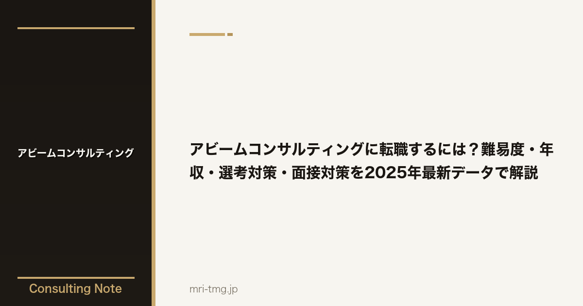 本記事では、アビームコンサルティングへの転職を検討している方に向けて、転職難易度や年収水準、選考フローから面接の具体的な対策方法までを最新データとともに詳しく解説します。