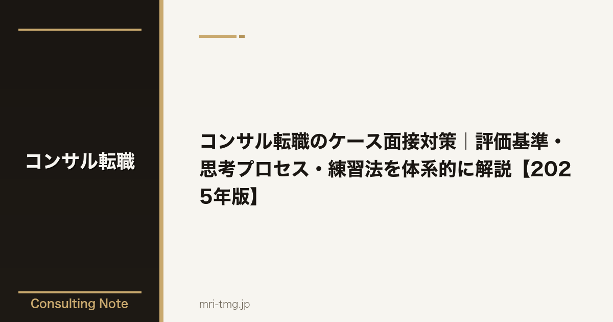 本記事では、ケース面接の基本構造から評価基準、実践的な思考プロセス、テーマ別の攻略ポイント、そして一人でも取り組める練習法までを転職者の視点で体系的に解説します。