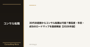 20代後半は事業会社で一定の実績を積みつつ、まだ柔軟性を評価してもらえるゴールデンゾーンです。30代になると「なぜ今コンサルなのか」というキャリアの一貫性がより厳しく問われるため、志望動機の精度が合否を分けます。35歳以降でも、ニッチな業界知識やCxOクラスとのリレーション構築経験があればシニアポジションでの採用可能性はありますが、ポジションが限られるため転職エージェントとの密な連携が不可欠です。
