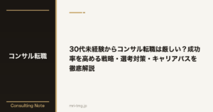 この年代で重要なのは、短い社会人経験の中でも「自分なりに課題を発見し、解決に向けて行動した」エピソードを明確にすることです。論理的思考力のポテンシャルを示すために、ケース面接対策には特に力を入れましょう。実務経験が浅い分、学ぶ姿勢と吸収力の高さをアピールすることが、合否を分けるポイントになります。