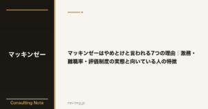 マッキンゼーのようなハイレベルな環境では、業務の難易度だけでなく、フィードバックの頻度やコミュニケーションスタイル、評価基準への納得感など、社風に関わる要素が日常の満足度を大きく左右します。入社前に社風を深く理解しておくことで、自分自身の強みや価値観との相性を見極められるようになるでしょう。