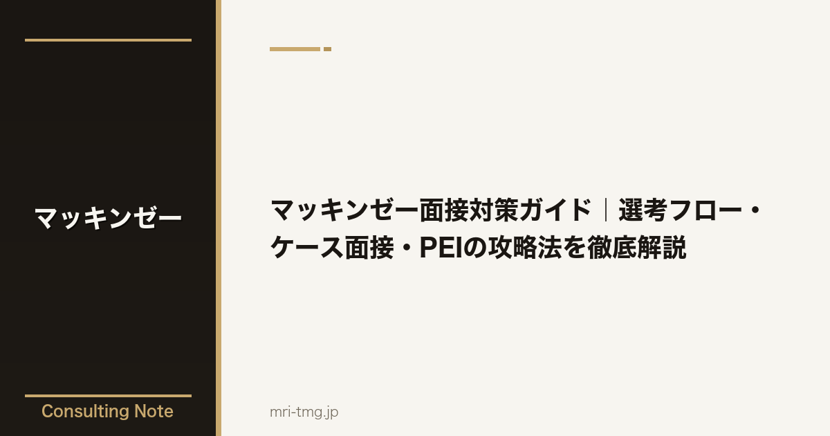 マッキンゼーの面接ではケース面接に加え、PEI(パーソナル・エクスペリエンス・インタビュー)が毎回のラウンドで実施されます。PEIはケース面接と同等かそれ以上に合否を左右する要素であるにもかかわらず、準備が不十分なまま本番を迎えてしまう候補者が少なくありません。